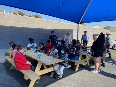 The sun shade installation is complete at The New Day Center family homeless shelter’s Family Hub in Phoenix! These structures provide shade on for an area that is usually sun drenched. The size is flexible.